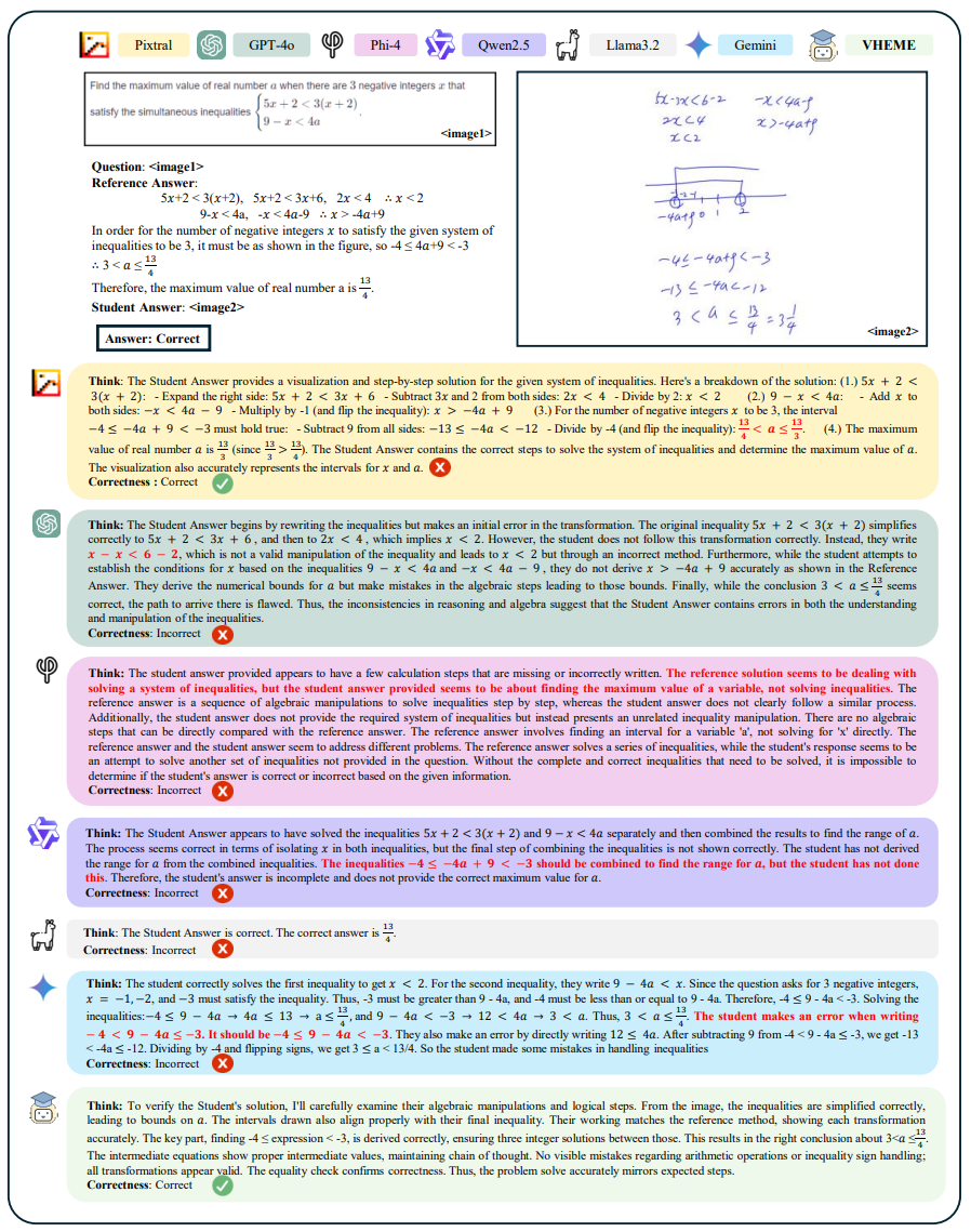 suffer from incorrect OCR of the student's handwritten mathematical expressions. Pixtral and Gemini misread